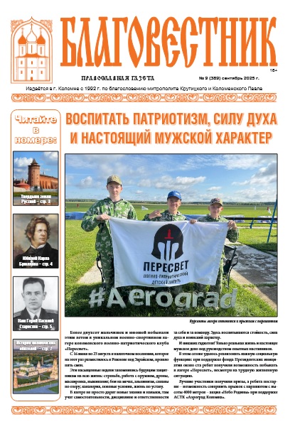 Сентябрьский номер газеты открывает сообщение об уникальном лагере коломенского военно-патриотического клуба «Пересвет». Этим летом в пяти его сменах трудились, занимались и возмужали более двухсот ребят.